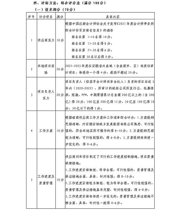 1、项目名称:安徽安桐城乡发展集团有限公司主体信用评级财务审计服务项目